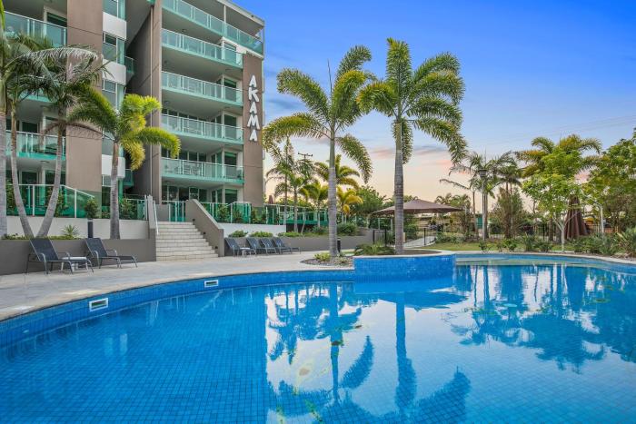 We stayed here for two nights with our 3 children! The apartments are very spacious, clean and modern. It’s a great location as well. Just 2 mins walk from the marina Heated pool lovely bonus in...