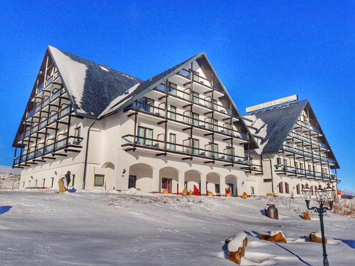 We booked in here at the last minute after checking there would be snow on the slopes. This is a large hotel slightly away from the main town square and the ski lifts, and it was a good 20 min walk...