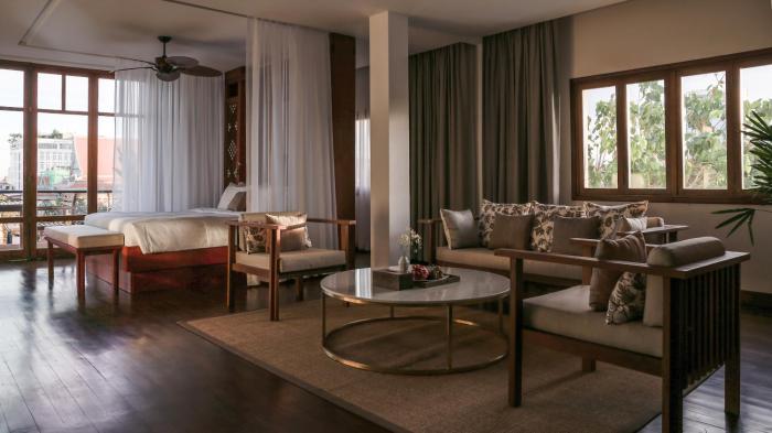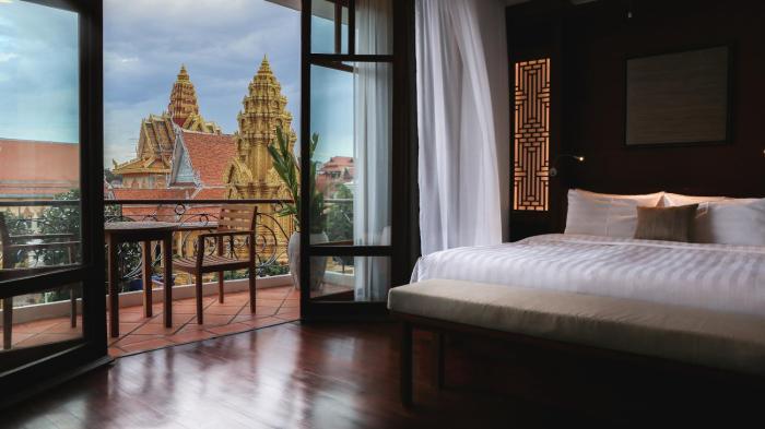This first-class urban hotel is located on a main road in the heart of Phnom Penh. It is ideal for guests who appreciate a stylish ambience. It is about 8 miles to Phnom Penh (PNH) Airport.
