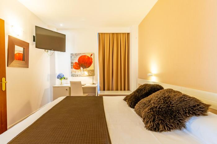 Air conditioning and central heating ensure that rooms maintain comfortable temperatures. All rooms are carpeted and include a double bed and a sofa bed. Extra beds can be requested. A safe, a minibar and a desk are also available. A refrigerator, a mini fridge and a tea/coffee station are standard features. A direct dial telephone, a television with satellite/cable channels, a radio, a stereo system, a plug adapter and WiFi provide all the essentials for a comfortable vacation. A hairdryer and a vanity mirror are available in the bathrooms, which are equipped with a shower and a bathtub. As a special feature, bathrooms are also stocked with cosmetic products and background music. Wheelchair-friendly rooms can be reserved. The hotel has family rooms and non-smoking rooms.