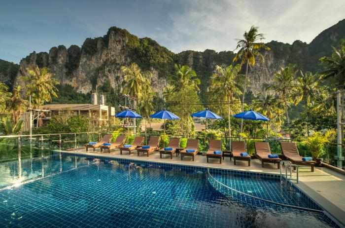 This resort is located in Krabi, about half a mile from the beach.
