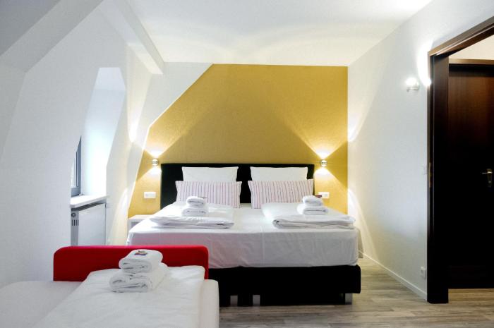 Rooms include a double bed. Extra beds can be requested. A telephone, a TV and WiFi also come standard in the rooms. A hairdryer is provided in the bathrooms. The hotel has non-smoking rooms.