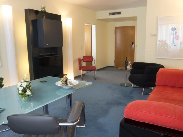 Rooms are equipped with air conditioning. Rooms include a sofa bed. Extra beds can be requested. A minibar and a desk are also available. The kitchenette comes with a refrigerator. A telephone, a TV and WiFi (for a fee) are provided as well. Bathrooms are equipped with a shower and a bathtub, as well as a hairdryer. The hotel has family rooms and non-smoking rooms.