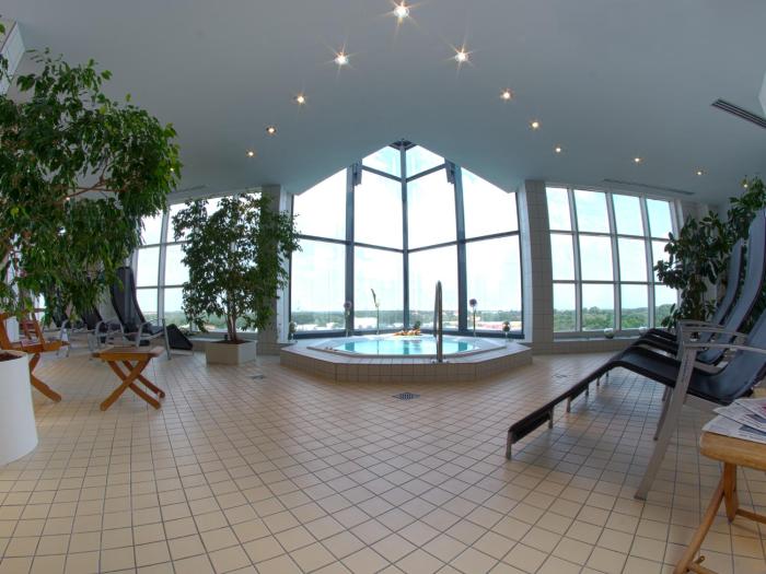 The hot tub in the pool area promises pure relaxation. Guests can enjoy various recreational activities, including diving, a gym, a spa, a sauna and solarium, as well as massage treatments for a fee.