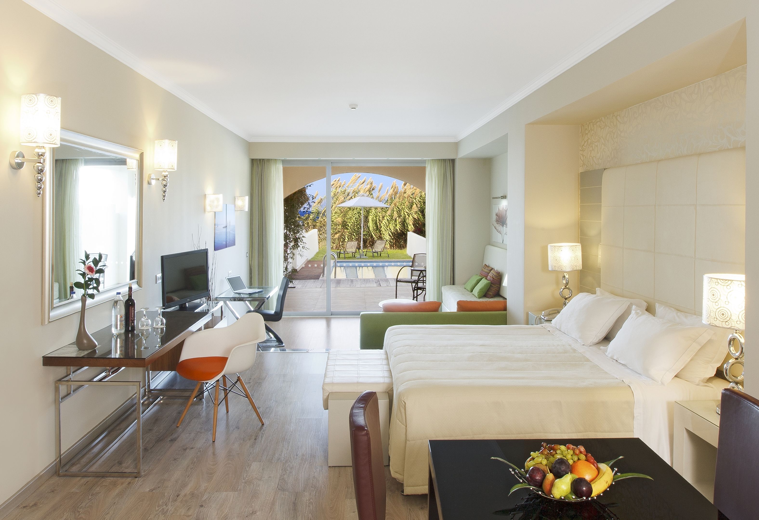 Rooms are equipped with air conditioning and central heating. Guests can enjoy the sea view from a balcony or terrace. Rooms have a double bed or a king-size bed. Separate bedrooms are available. Children's beds and extra beds can be requested for younger guests. A safe and a minibar are also available. Guests will also find a tea/coffee station included among the standard features. A direct dial telephone, a television with satellite/cable channels, a radio, a DVD player and WiFi (no extra charge) are provided as well. A turndown service offers guests additional comfort. Slippers are included. Bathrooms are equipped with a shower, a bathtub and a whirlpool bath. A hairdryer and bathrobes are available for daily use.