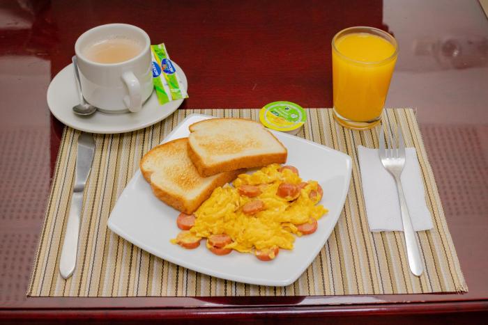 A complimentary English breakfast is served on weekdays from 6 AM to 9 AM and on weekends from 7 AM to 10 AM.