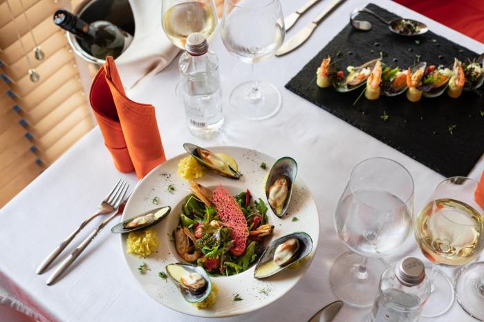 All-inclusive can be booked. All-inclusive vacationers enjoy special extras like snacks, in addition to a selection of alcoholic and non-alcoholic beverages. Breakfast, lunch and dinner will satisfy appetites big and small. The menu also offers gluten-free meals and vegetarian dishes. The show cooking is a particularly special attraction.