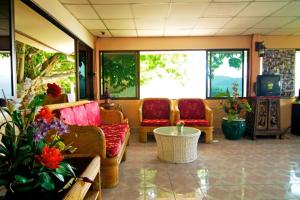 The hotel have superb view. It is a family business, lovely. There are a lot of big trees, good energy. It is near a road, quite loud. There are bungalows down the hill, maybe more quiet. If you...