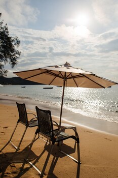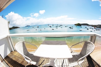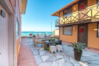 Best location possible. Smack in the middle of Rua das Pedras, it's close to restaurants, bars, clubs and the pier where you get taxi boats to many beaches. It's also right on the edge of the beach...