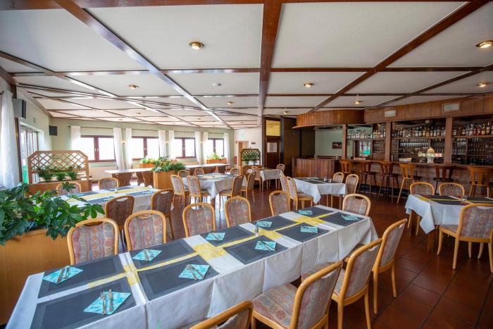 The dining area includes a restaurant and a bar.