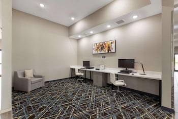 This hotel warmly welcomes guests in Coralville.