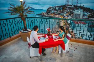 Take the elevator up to the top, then walk up the remaining two floors to the enclosed bar. Walk up one more floor to the roof top. Fantastic view of beautiful Mazatlan. There is a small swimming...