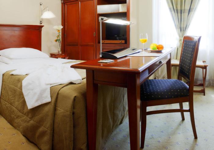 We stayed here with our OAT travel group. Very quiet rooms within easy walking distance of the Lower and Upper towns. Expansive breakfast buffet, clean rooms and comfortable beds with great staff...