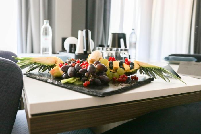 The dining area includes a restaurant and a bar. Half board can be booked. Breakfast and a comprehensive dinner buffet offer culinary delights every day.