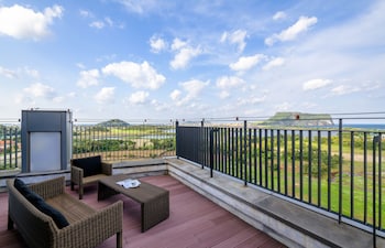 Brown suites is in a strategic location - about 10 minutes drive from the World heritage site of Seongsan Ilchulbong. Nice room with a view towards the sea and Seongsan Ilchulbong. Bed very...