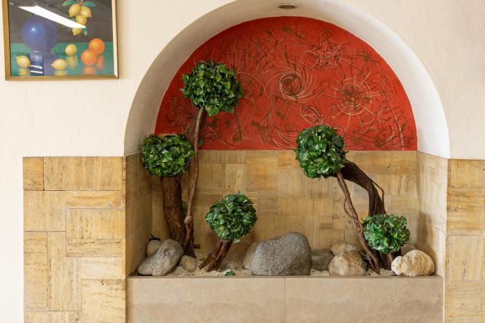 Guests have a choice of 10 junior suites, 2 suites and 64 double rooms located in two 2-story buildings with elevators. The reception desk in the lobby is staffed around the clock. Services and facilities include a coat check, a safe, a currency exchange service, a TV room, a childcare service, a transfer service and a conference room. Wireless internet access is provided in public areas. A garden provides extra space for rest and relaxation in the open air. Guests arriving by car can park their vehicles in the garage (for a fee) or in the parking lot.