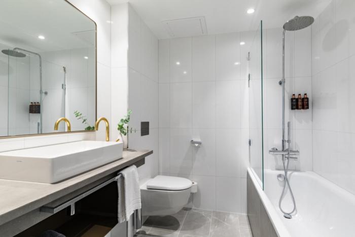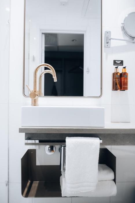 Rooms include a double bed. Children's beds can be requested for younger guests. A minibar is provided. An ironing set is provided for guests' convenience. A telephone, a TV and WiFi are provided as well. Bathrooms are equipped with a shower and a bathtub, as well as a hairdryer.