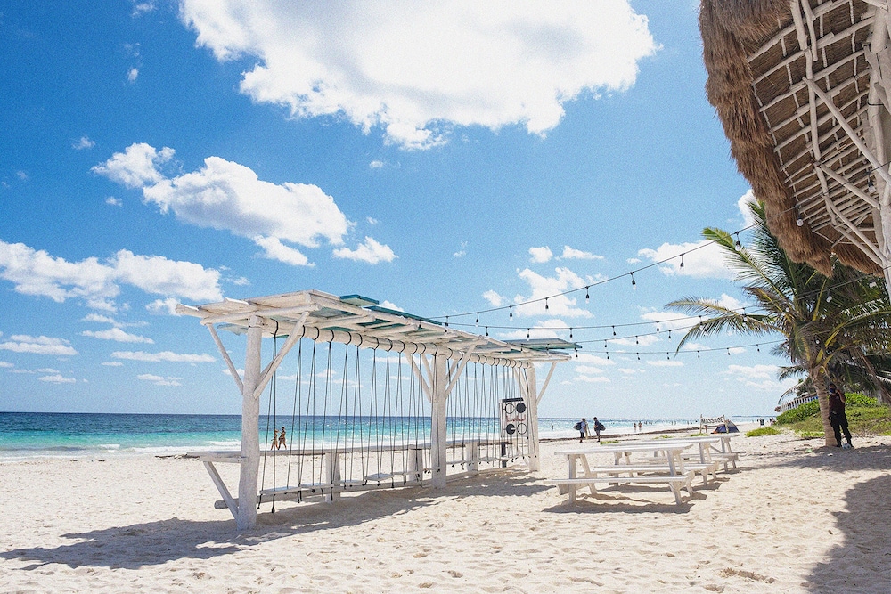 This hotel welcomes guests in Tulum.