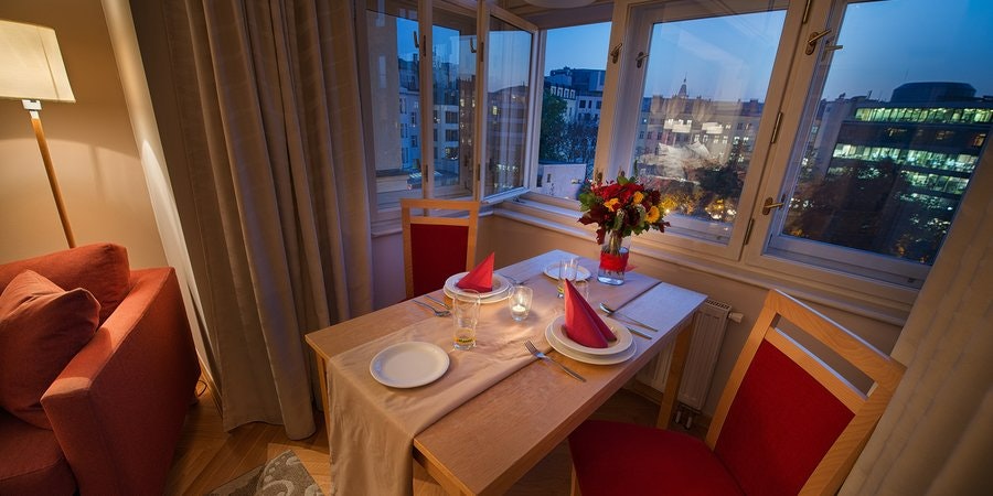 The apartment hotel was built in 1920. 72 rooms, including 2 single rooms and 69 double rooms, are located on 8 stories and can be reached by 2 elevators. Check-in and check-out are possible at any time at the 24-hour reception desk. A safe, a currency exchange service, room service, a laundry service and 2 conference rooms are available. Wireless internet access allows guests to stay connected while on vacation. Guests arriving by car can park their vehicles in the garage or in the parking lot.