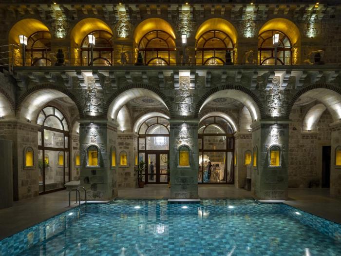 This boutique hotel is located in the heart of Ürgüp, with all the popular tourist attractions just outside the door. Its setting is especially ideal for parents with children. It is approximately 25 miles to Nevsehir (NAV) Airport. Kayseri (ASR) is located about 40 miles away.
