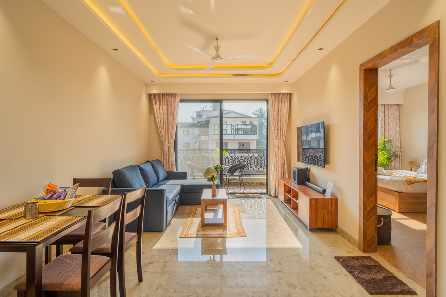 Retreat To This Charming 1-BHK Apartment, Your Ideal Stay For A Memorable Goa Getaway! Easily Accessible By Lift, The Living Room Features A TV, Plush Sofa &Amp; A Private Balcony, All Just Steps Away From The Kitchen. The Bedroom Features An AC &Amp; An Ensuite Bathroom Complete With A Jacuzzi Bathtub. Unwind At The Rooftop Pool, Where Loungers And Breathtaking River Views Set The Stage For Perfect Sundowners. Enjoy Exceptional Services From A Top 5-Star Hospitality Team Dedicated To &Ldquo;Atithi Devo Bhava.&Rdquo;