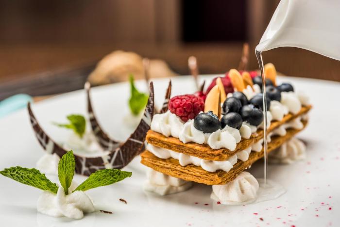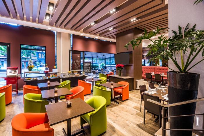 Various dining options are available, including a breakfast room, a café and a bar. The non-smoking restaurant provides high chairs for children. A bed and breakfast package can be booked. A generous breakfast buffet guarantees a great start to the day. For lunch, guests can choose between à la carte and a set menu. Dinner is served as à la carte. The hotel also offers special catering options.