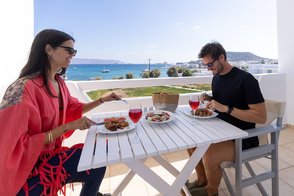 This hotel lies in a quiet area in Pollonia, just 30 yards from the beach.