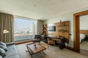 Rooms feature a living room, a kitchen and a bathroom. Air conditioning and central heating ensure comfortable indoor temperatures. A balcony is included as a standard feature in some rooms. Rooms have a double bed or a king-size bed. Separate bedrooms are available. A safe and a minibar are also available. For self-catering guests, there is a well-equipped kitchenette with a refrigerator, mini fridge, cooktop, microwave and tea/coffee station. Further amenities include a washing machine and an ironing set. A direct dial telephone, a television with satellite/cable channels, a radio, a stereo system and WiFi provide all the essentials for a comfortable vacation. Bathrooms include a hairdryer and are equipped with a shower and a bathtub. Wheelchair-friendly rooms can be reserved.