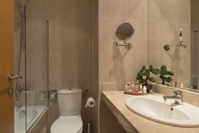 Air conditioning and central heating ensure that rooms maintain comfortable temperatures. Extra beds can be requested. A safe, a minibar and a desk are also available. The kitchenette comes with a mini fridge and a tea/coffee station. An ironing set is provided for guests' convenience. Other features include a direct dial telephone, a television with satellite/cable channels, a radio, an alarm clock and WiFi. A hairdryer and bathrobes are provided in the bathrooms, which include a shower and a bathtub. The hotel has family rooms and non-smoking rooms.