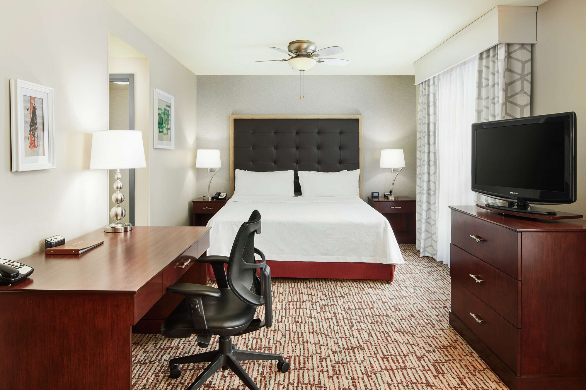 Make yourself at home in one of the 91 air-conditioned rooms featuring kitchens with full-sized refrigerators/freezers and stovetops. Complimentary wired and wireless Internet access keeps you connected, and cable programming provides entertainment. Partially open bathrooms with shower/tub combinations feature deep soaking bathtubs and hair dryers. Conveniences include desks and complimentary newspapers.