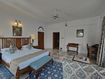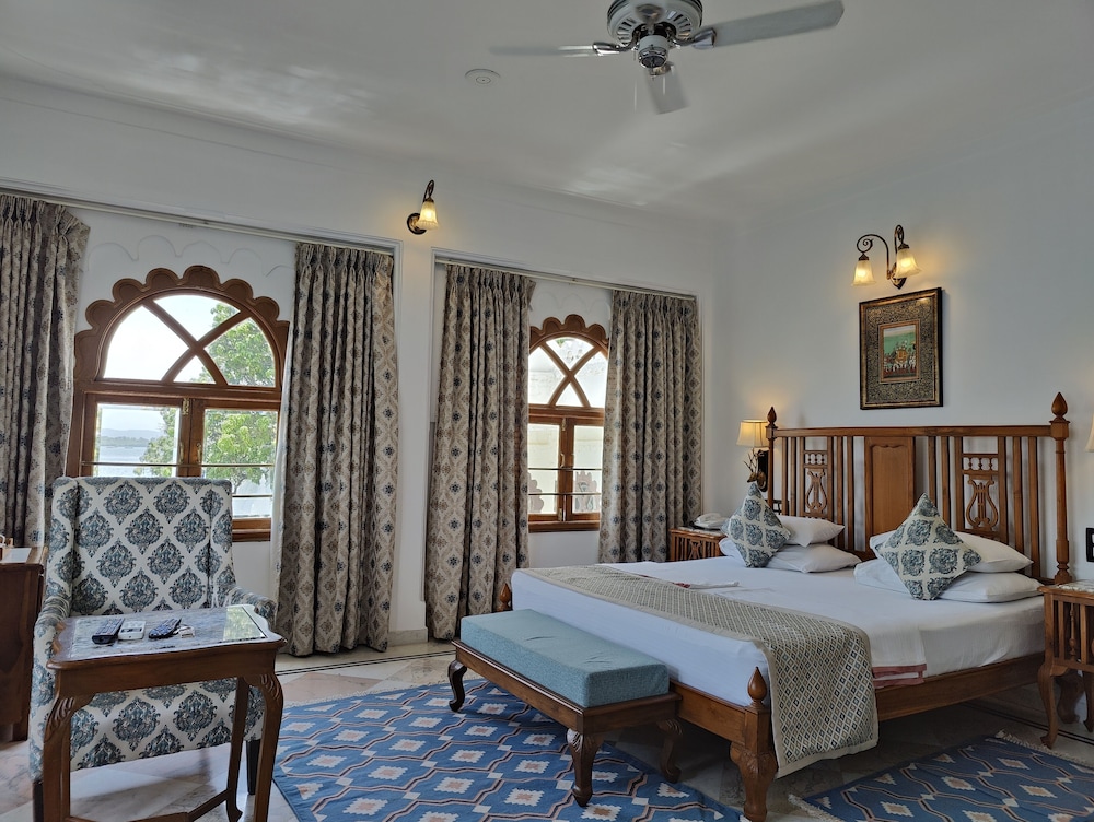 AN old haveli nicely done up. The deluxe lake view rooms have spectacular views of the city palace. You feel you are on the water. High beds and a large bathroom. The feel is of a haveli rather than...