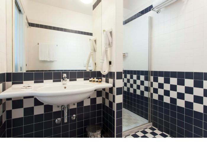 Air conditioning ensures that rooms maintain comfortable temperatures. Guests can enjoy the sea view from a balcony or terrace. All rooms are carpeted and include a double bed. Guests can also reserve separate bedrooms. Children's beds can be requested for younger guests. There is also a safe and a desk or, for an additional fee, a minibar. Guests will also find a mini fridge included among the standard features. A telephone, a TV and WiFi (no extra charge) provide all the essentials for a comfortable vacation. Bathrooms are equipped with a shower and a hairdryer. 3 family rooms are available for parents with children.