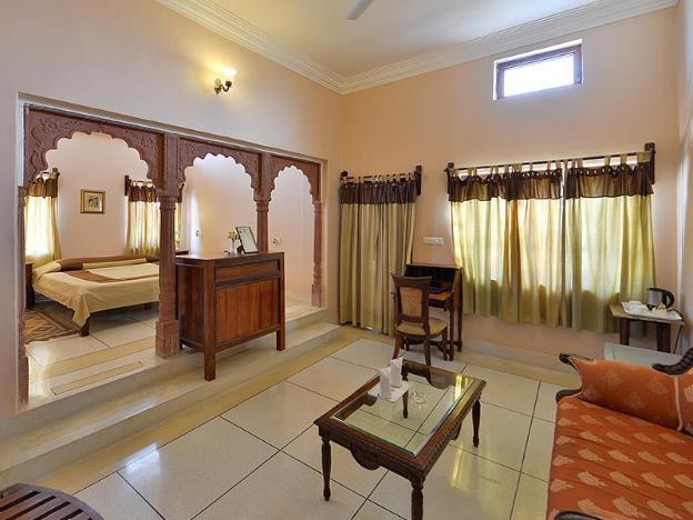 Castle Bijaipur provides an internet access service with Wi-Fi zone to its visitors. The distance between this hotel and Chittorgarh Railway Station is 36 km and Padmini's Palace is 38 km. This hotel in Chittorgarh has 30 rooms spread over a single floor. Each room has amenities like a bottled/drinking water, doctor on call, air-conditioner, newspaper, interconnecting room facility, television with satellite connection, wardrobe and an attached bathroom with hot and cold running water supply. null