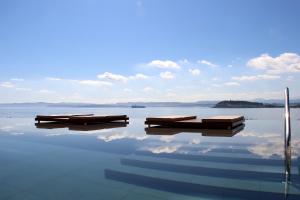We used this hotel after arriving late on the ferry. It's a little way out of town, but well worth the detour. Our room faced the sea and a sandy beach and had a good balcony. Lovely room, modern...