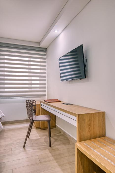 Rooms are equipped with air conditioning. A desk is provided. Guests will also find a refrigerator included among the standard features. A telephone, a flatscreen television with cable channels and WiFi (no extra charge) are provided as well. Bathrooms are equipped with a shower and include a hairdryer. For extra comfort in the bathrooms, guests are offered cosmetic products. Wheelchair-friendly rooms can be reserved.