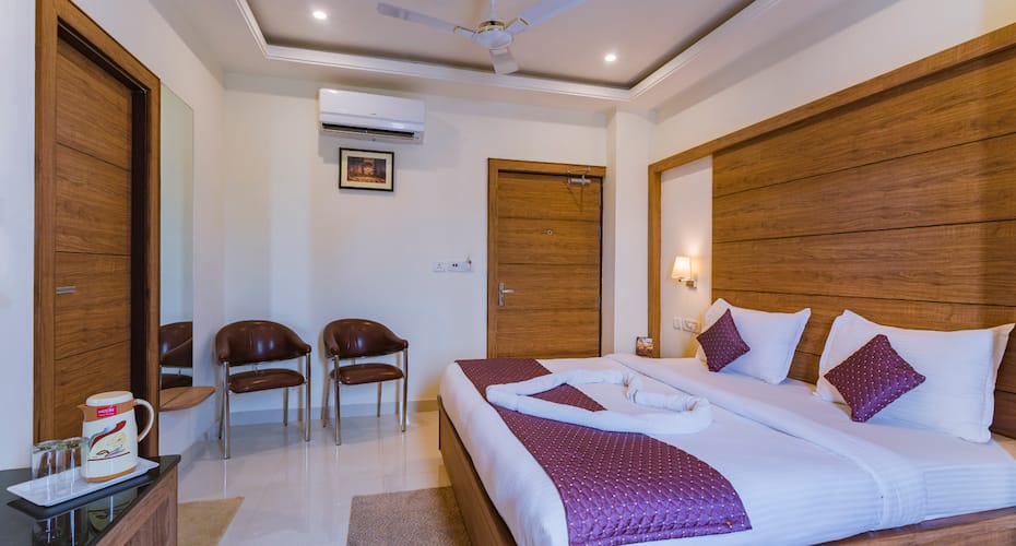 Its a very average hotel with poor service. Located very well on main road, right opposite prem mandir. Rooms are small, hygiene is average, cleaning/maintainance of rooms is also poor. Bedsheets...