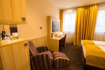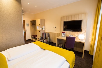 If you need to be near the train station this is a great location. The staff was friendly. The continental breakfast was the best I had in my Germany travels. The double room was two mattress put...