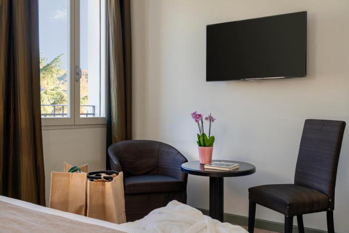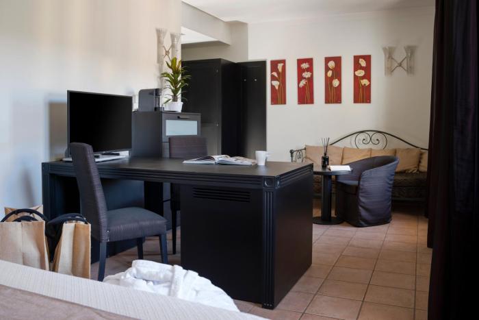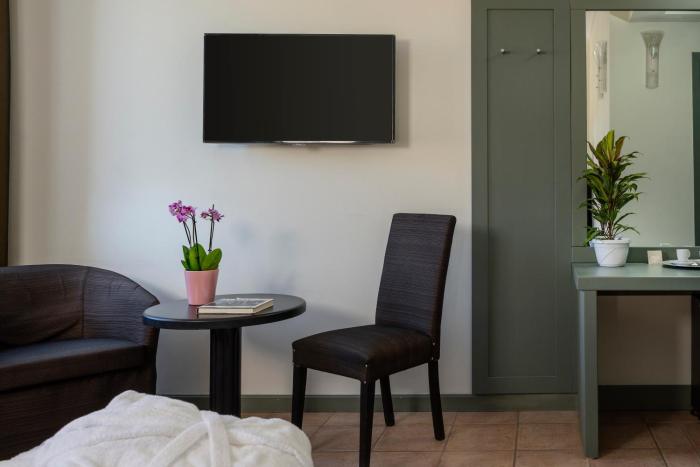 Rooms are equipped with air conditioning and individually adjustable heating. A balcony is among the standard amenities of some rooms. Rooms have a double bed or a king-size bed. Children's beds can be requested for younger guests. A safe and a minibar are also available. Guests will also find a refrigerator included among the standard features. A TV and WiFi are provided as well. Bathrooms are equipped with a shower and a hairdryer. The hotel has non-smoking rooms.