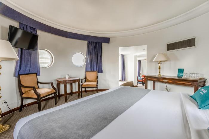 Rooms include air conditioning and central heating. A balcony is among the standard features of some rooms. All rooms are carpeted and have a double bed or a king-size bed. A safe and a minibar are also available. Guests will also find a mini fridge included among the standard features. A direct dial telephone, a television with satellite/cable channels, a radio and WiFi ensure optimal comfort. Bathrooms are equipped with a shower and a bathtub, as well as a hairdryer. Wheelchair-friendly rooms can be reserved. The hotel has non-smoking rooms.