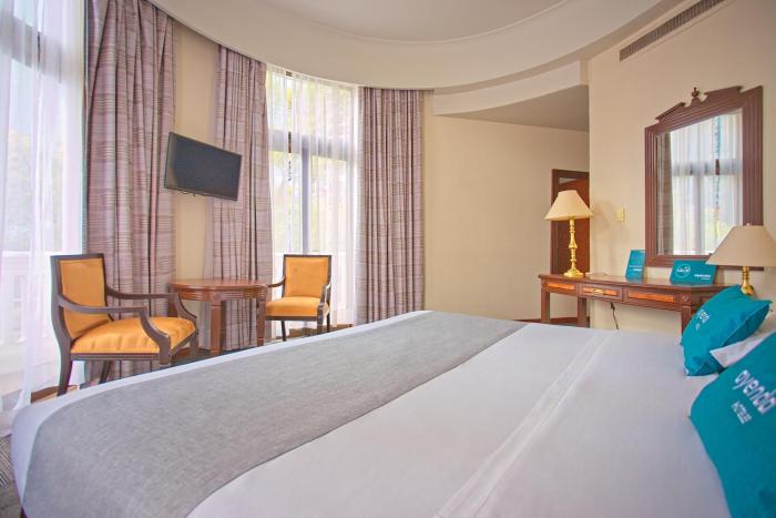 1907 building with minimally comfortable furnishings. The caffetería an higher end restaurant are great and so is the service. I was there during 7.2 earthquake and it was not too bad. The beds are...