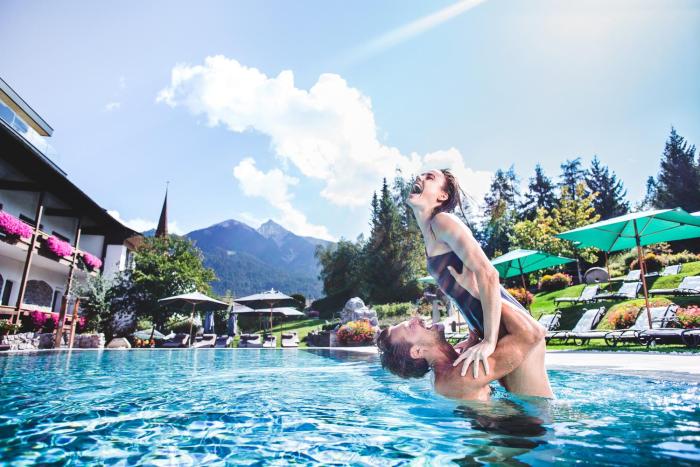 The indoor and outdoor pools are ideal for exercise as well as relaxation. A short break or an entire afternoon on the sun terrace, which features outdoor lounge chairs and umbrellas, is time well spent. The hot tub in the pool area promises pure relaxation. For guests who wish to keep active, cycling/mountain biking, golf and Nordic walking are available. Water sports enthusiasts are offered aquafit. The surroundings of the hotel offer an ideal environment for skiing. Sports and recreation facilities at the hotel include a gym, table tennis and yoga. Various wellness options are available at the hotel, including a spa, a sauna, a steam bath, a beauty salon, massage treatments, anti-aging treatments and a solarium. Recreational facilities include a kids' club, live music, a dance club and a nightclub.