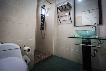 The place was quaint, clean, amazing bathroom with rain forest shower and tons of jets. Right on the beach with a pool and continental breakfast included. Small, well equipped kitchen with a full...