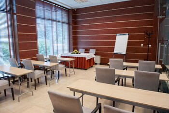 Rather old, big hotel near the centre of Debrecen. Single room: quiet, well-equipped. Free PC in tne business centre room. Dinner (room without windows) and breakfast (well-lit hall) were fine...