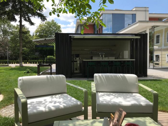 The dining area includes a restaurant and a bar.