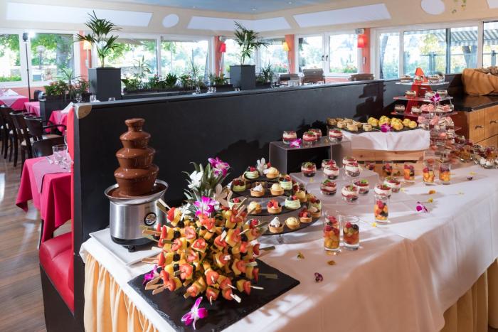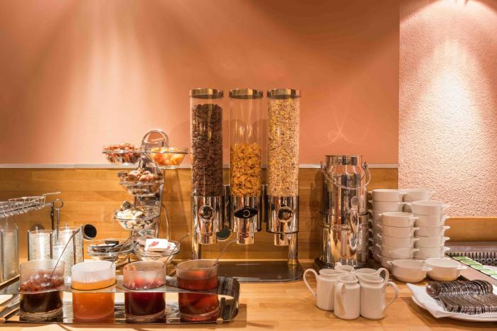 Dining facilities include a restaurant, a dining room, a café and a bar. At breakfast, guests serve themselves at the generous buffet. Various dishes can be ordered à la carte for lunch and dinner.