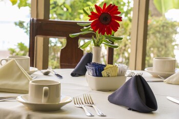 Various dining options are available, including a dining room, a café and a bar. Guests can indulge their palates at the non-smoking restaurant, which features air conditioning and a separate area for smokers. Catering options include a bed and breakfast package, half board and full board. A continental breakfast buffet guarantees a great start to the day. At dinner, guests can order à la carte. Set menus are available at lunch and dinner. Special culinary options, such as diet meals, are also available. The hotel also offers special catering options.