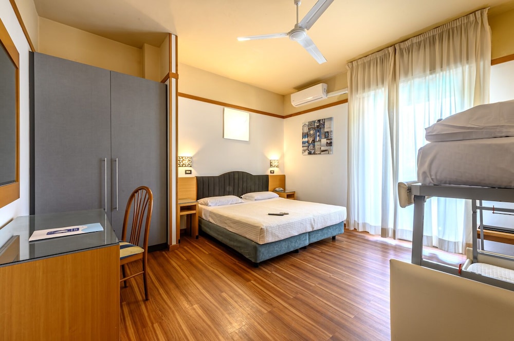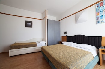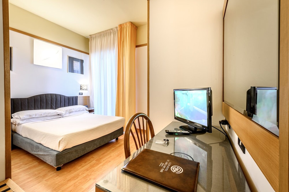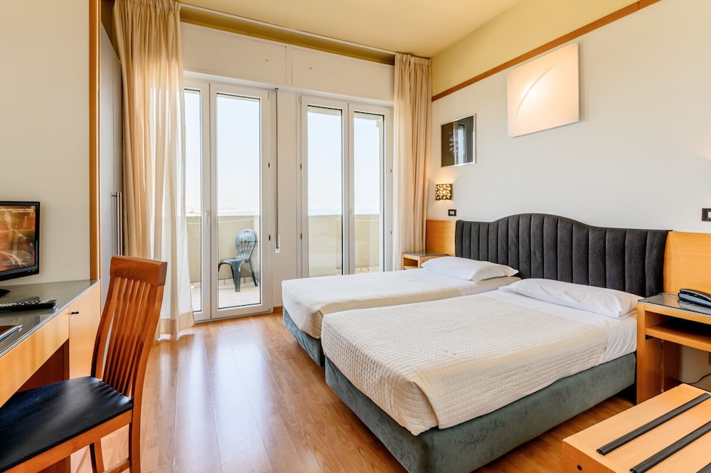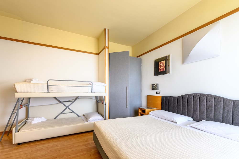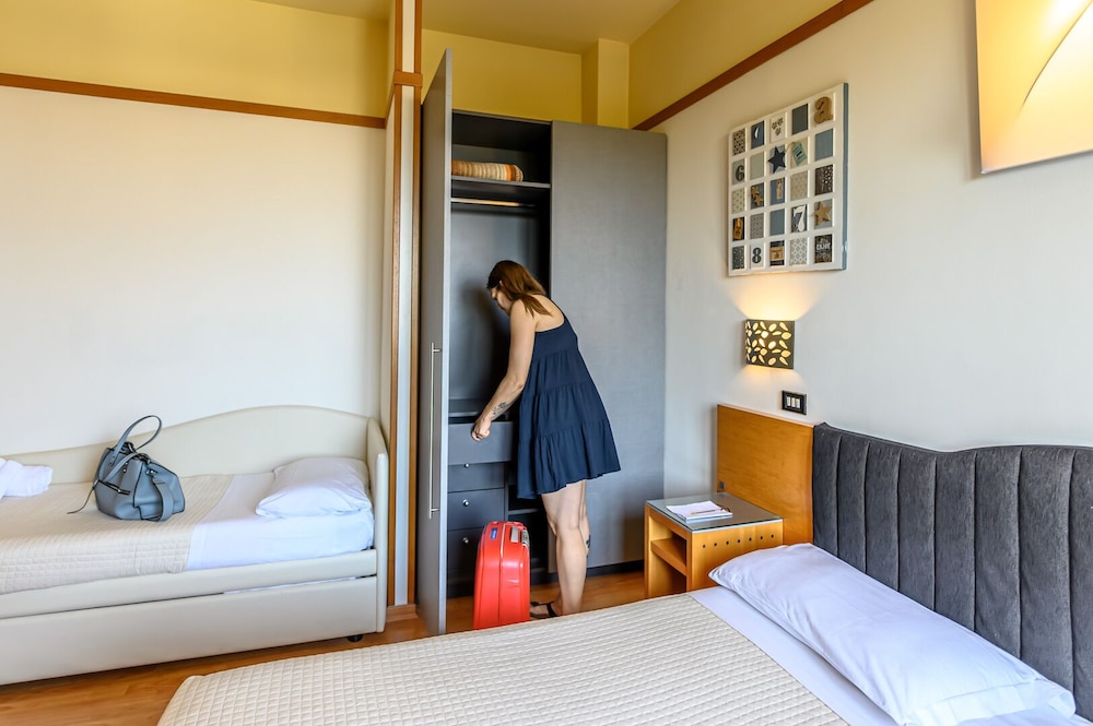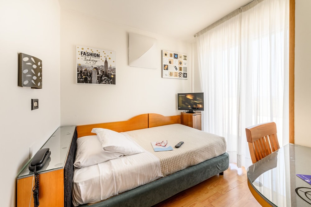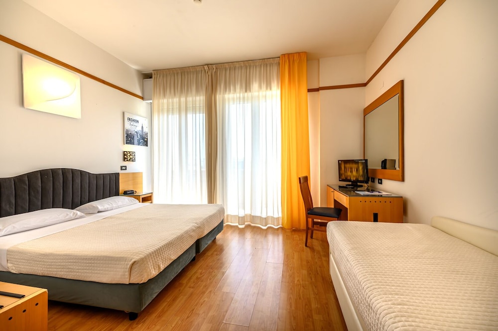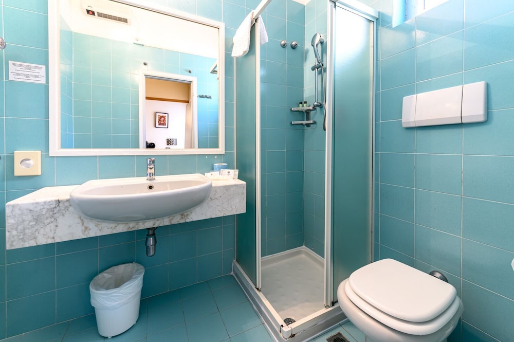 Old hotel in need of refurbishing. Nothing like the pictures on the web site. This has nothing to do with a 4-star hotel, not even by Italian standards. One tiny slow elevator. If you need exercise...