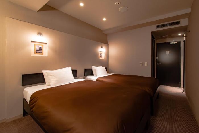 Typical small Japanese business hotel, really only 2* max Basics delivered in a friendly way. Room literally just big enough for the double bed and bathroom, not wardrobe just two hangers on the...