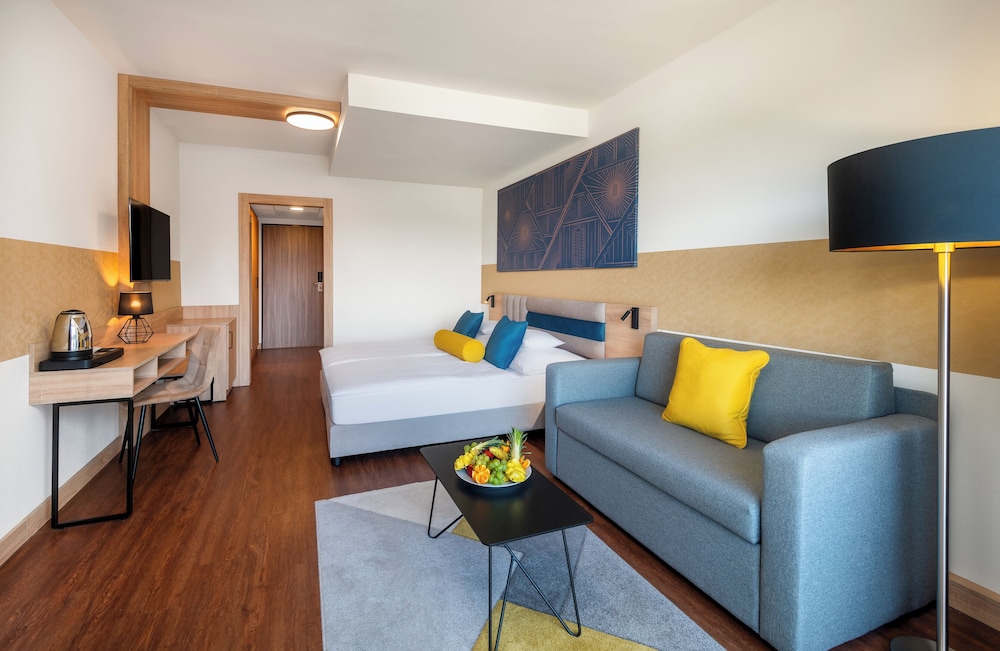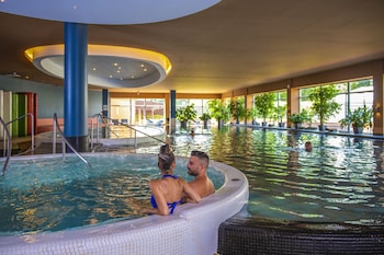 Ideal for working out or just relaxing, the pool complex features an indoor area and a children's pool. A short break or an entire afternoon on the sun terrace, which features outdoor lounge chairs and umbrellas, is time well spent. The hot tub in the pool area promises pure relaxation. Sports and recreation options include a gym or, for a fee, billiards and bowling. At the hotel, wellness facilities such as a sauna are available. For an additional fee, guests can also enjoy many other services, including a beauty salon, massage treatments and a solarium.