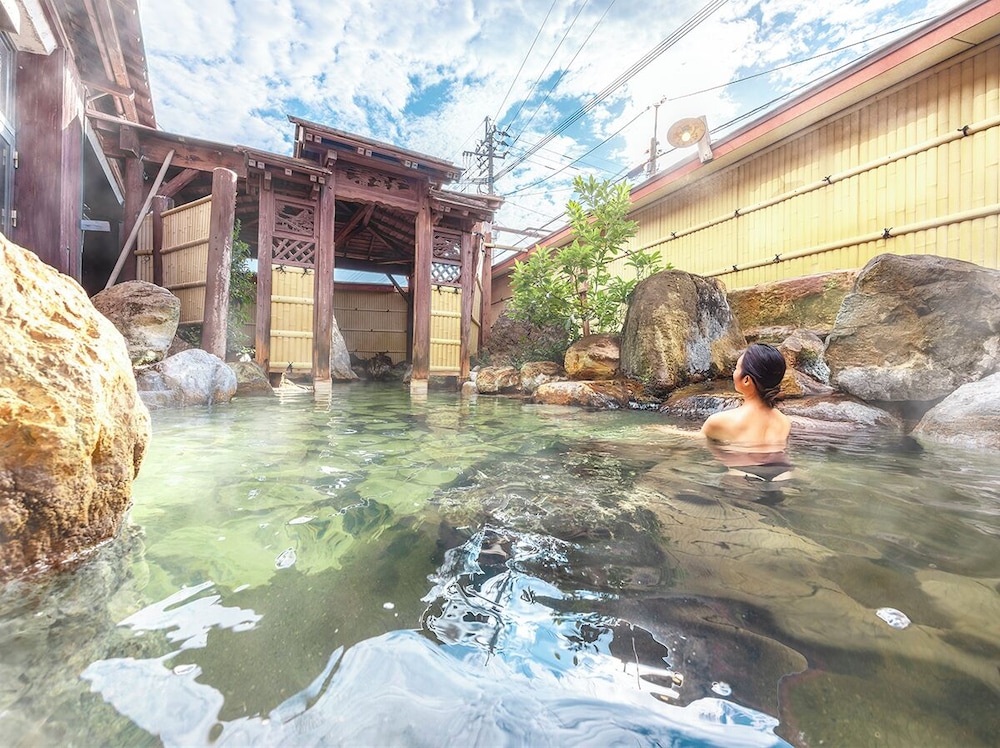 Nice outdoor onsen and tasty Japanese breakfast